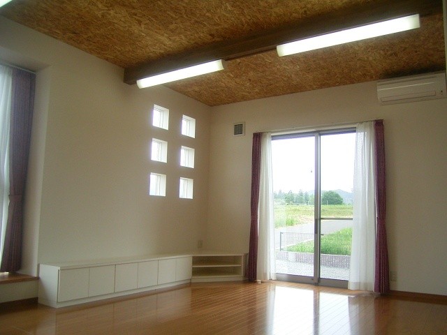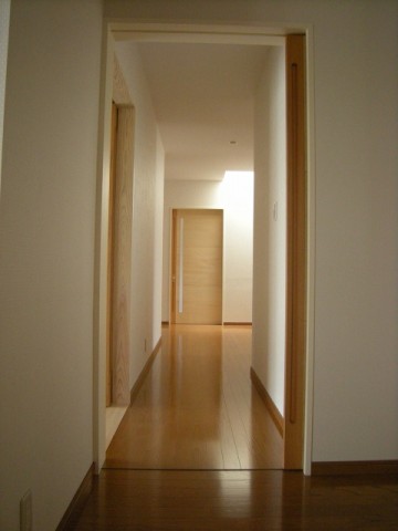 リビングの天井や室内建具を木調とし、柔らかさを演出しています。