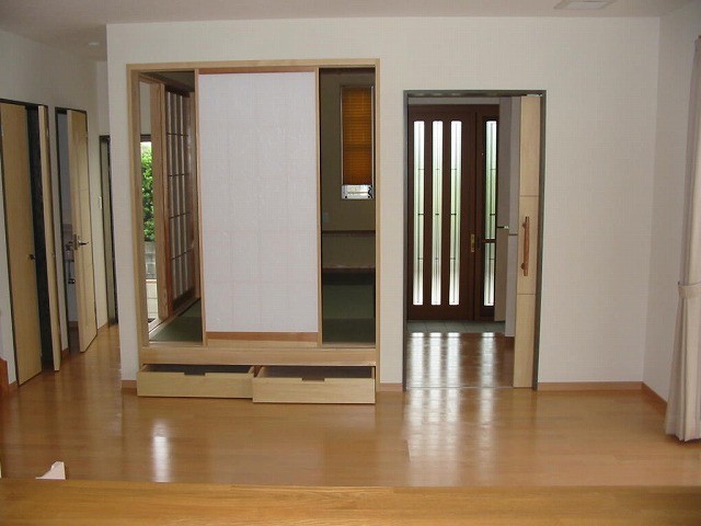リビング内の一角に和室を設けました。和室の下は収納です。