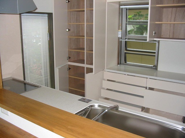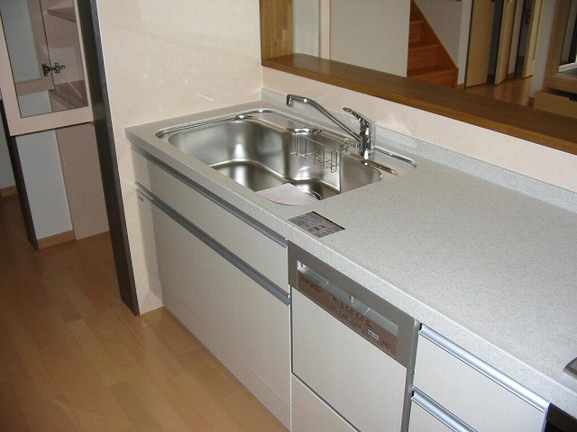 システムキッチン 食洗機付 清潔感あふれる白を基調としています。