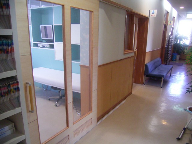 「リフォームの動機」 築10年を迎え、外来患者様に充分な対応を図るため、 処置室を2分割にし、個別の対応を行いたい。 「設計・施工の工夫点」 造り付けの家具を多用する設計を行い、 機能的な収納スペースとデザイン性を考慮した。